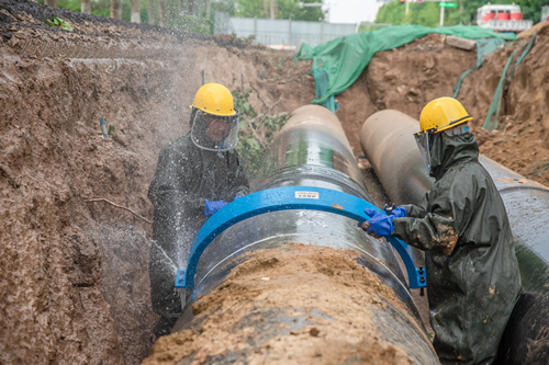 高溫水管網(wǎng)泄漏事故應(yīng)急演練檢驗的是對供熱中斷的應(yīng)急處置水平。發(fā)生泄漏后,生產(chǎn)運營調(diào)度中心、分公司及工程管理中心聯(lián)動,將該分支管網(wǎng)進行切除運行,降低管網(wǎng)壓力,并采用管卡進行堵漏。